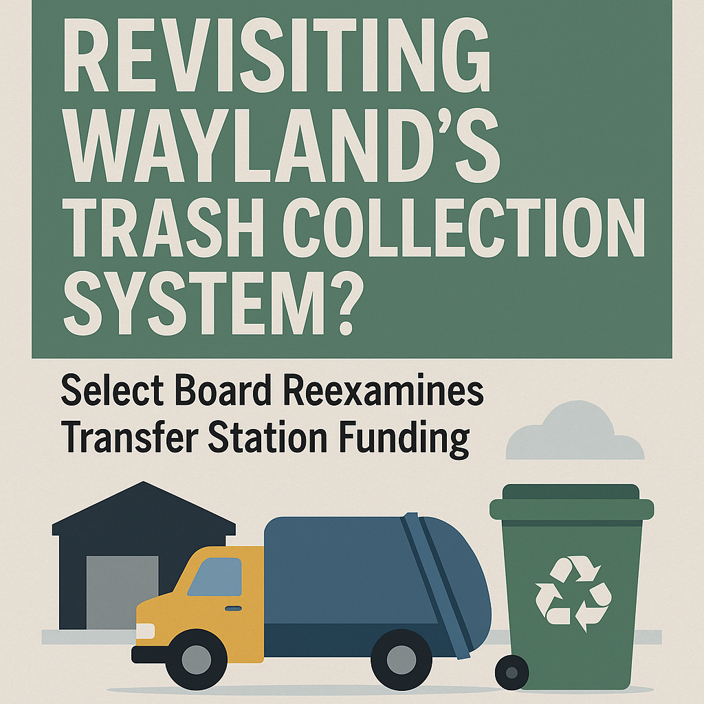 Town officials have not acted on that proposal, and recent meetings show no movement toward town-wide service. For now, the transfer station remains the centerpiece of Wayland’s waste management system—supported by user fees, modest subsidies, and continued discussion about how best to balance convenience, cost, and sustainability.