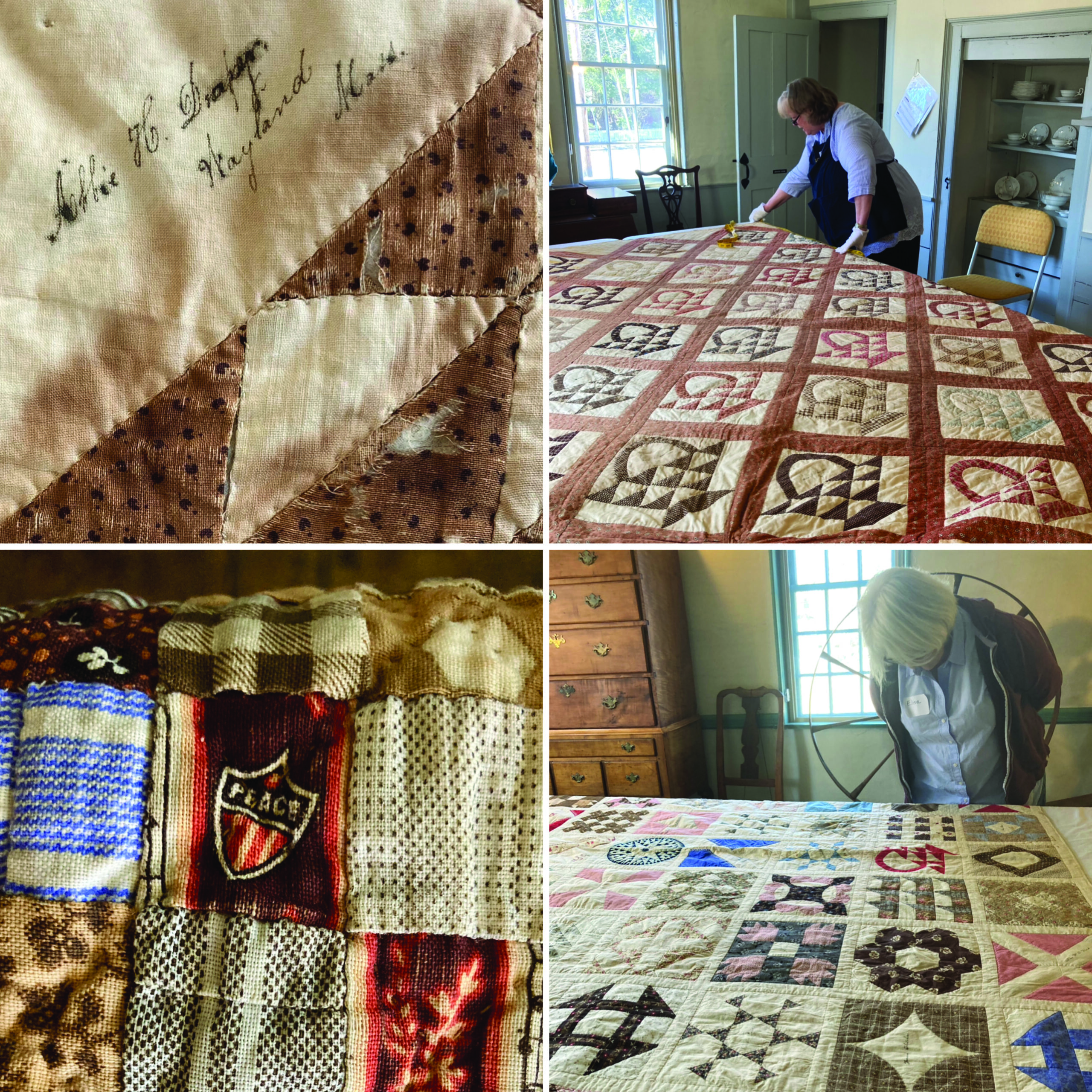 Details like these barely scratch the surface of the history woven into the quilts in the collection at Wayland’s Grout-Heard House Museum. Each quilt is its own entity, not to be compared to another, but appreciated for its own “beauty,” story, and inspiration. Many of the stories are lost, but we can imagine how the quilt was made, the creativity and effort involved, and perhaps the joy it would bring to those who used it.