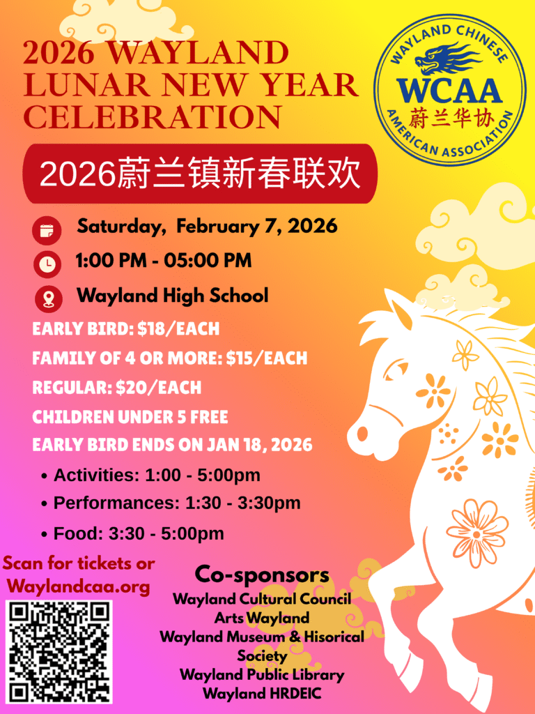 Celebrate “Noon Year’s Eve” with the Wayland Free Public Library! Join us for crafts, snacks, and a special noontime countdown! For families with young children.