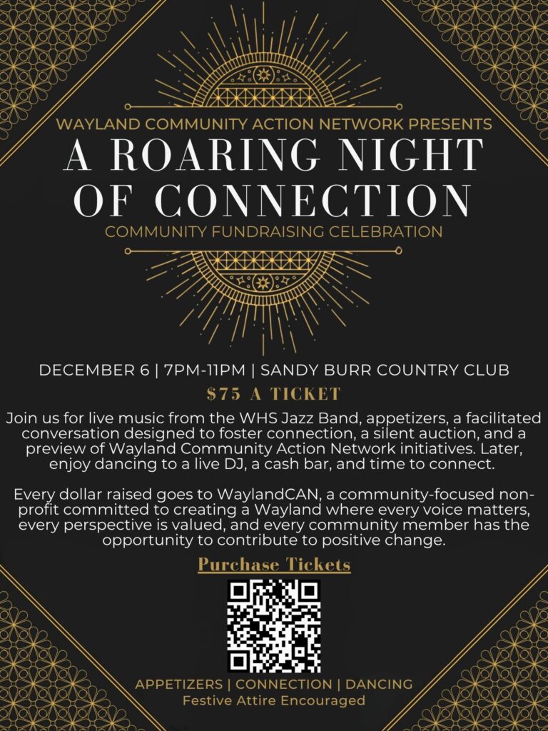 This event is sponsored by the Wayland Human Rights, Diversity, Equity and Inclusion Committee (HRDEIC). The HRDEIC thanks The Village Bank as a community sponsor. Attendees are asked to bring a new hat, scarf or gloves in support of the bank’s Warm Winter Wishes clothing drive.
