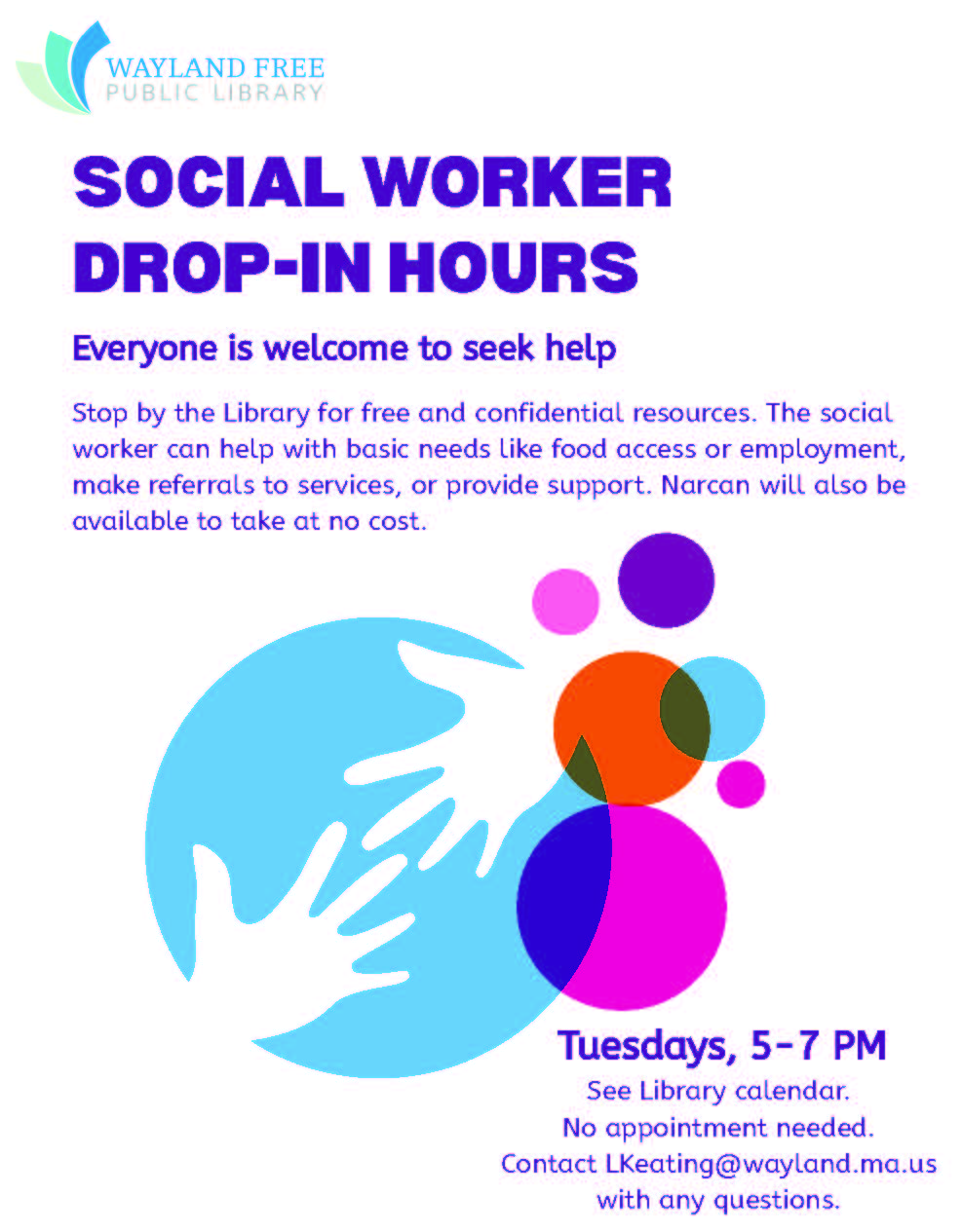 Social Worker Drop-In Hours – New Hours! Apr 20 Social Worker Drop-In Hours – New Hours! 5:00 pm - 7:00 pm Free