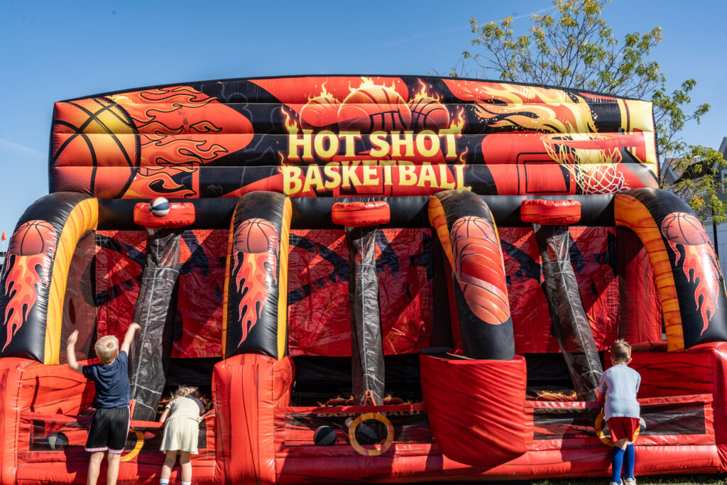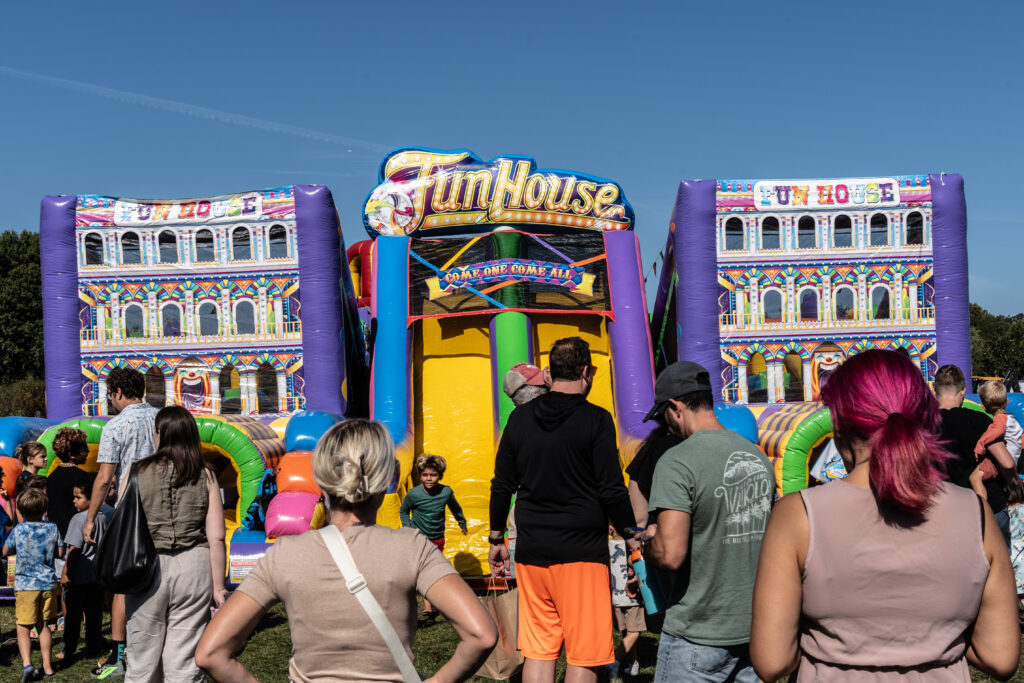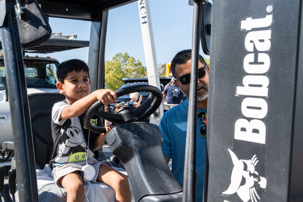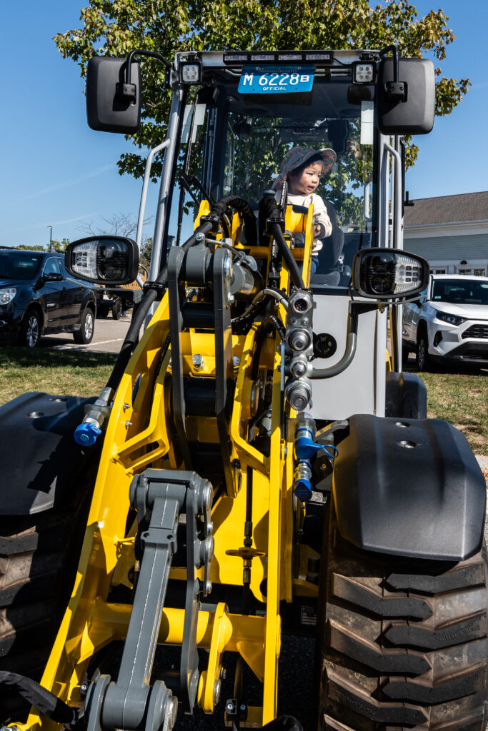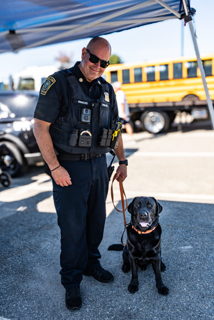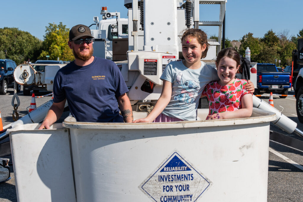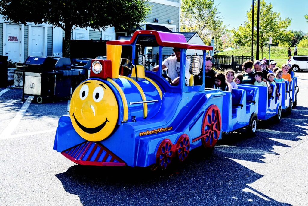 After the parade, families explored the festival grounds where rows of booths, crafts, and food vendors created a lively market atmosphere. The Touch-a-Truck exhibit drew long lines of children eager to climb into DPW tractors, loaders, and police vehicles. Officer Shane Bowles and his K-9 partner greeted visitors, while Eversource volunteers offered bucket-truck rides high above the crowd. The Roaming Railroad train and inflatable games kept kids entertained throughout the afternoon as music drifted across the green.
