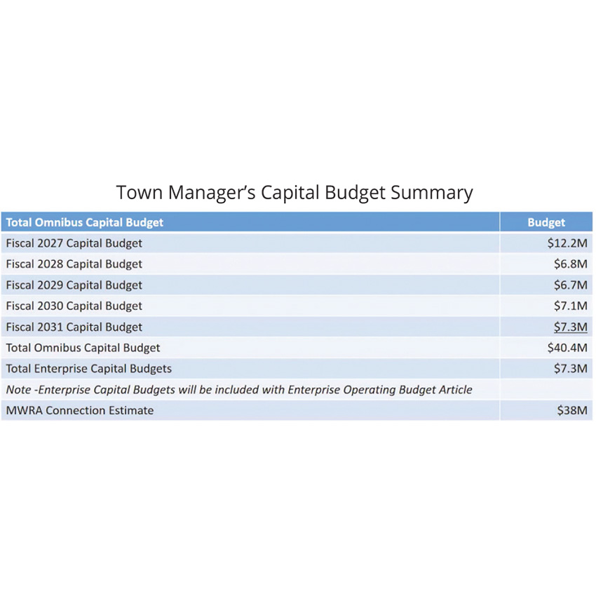The Capital Improvement Planning Committee has proposed an $8.3 million capital budget for fiscal 2027 – lower than both departmental requests and prior projections – marking a significant departure from the Town Manager’s draft five-year capital plan from December.