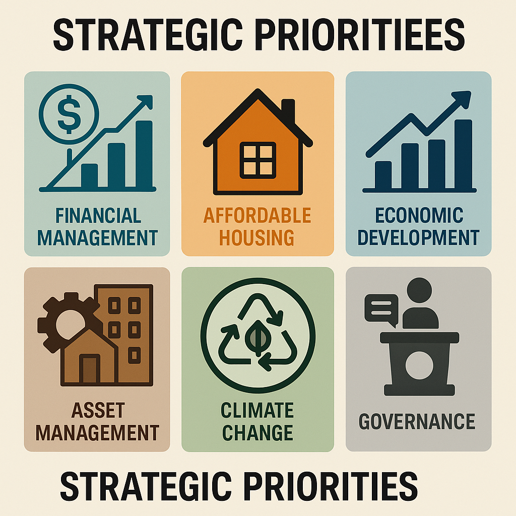 Strategic priorities in six areas were highlighted which included asset management and capital improvements, affordable housing, economic development, financial policy updates, effective governance and communication and climate change initiatives.